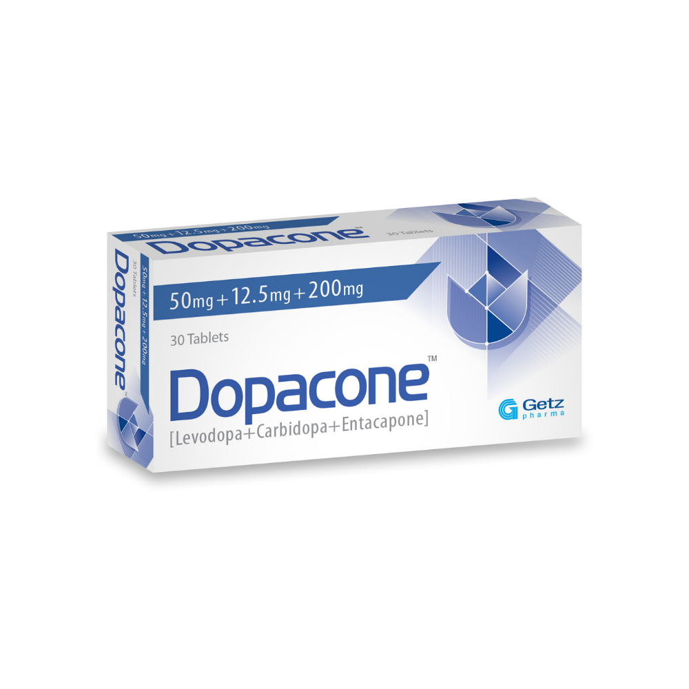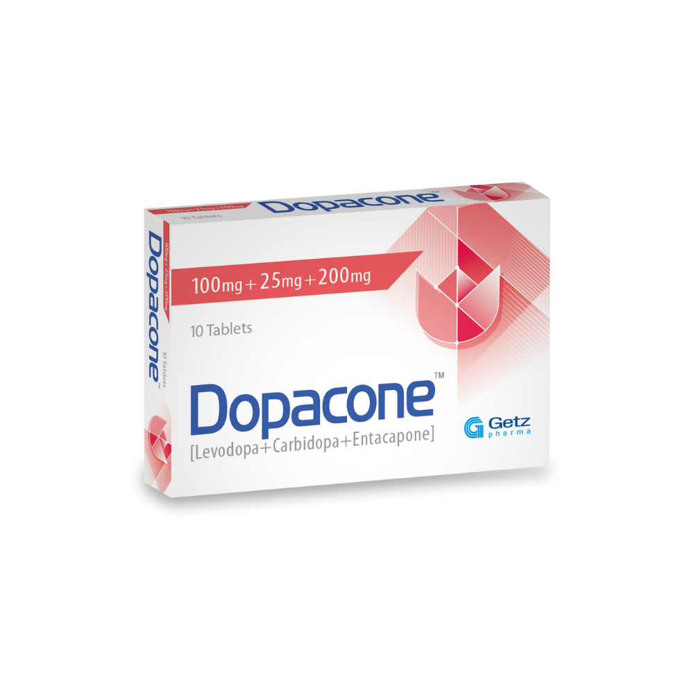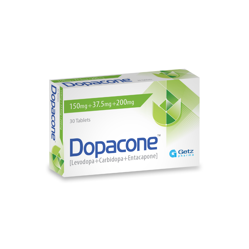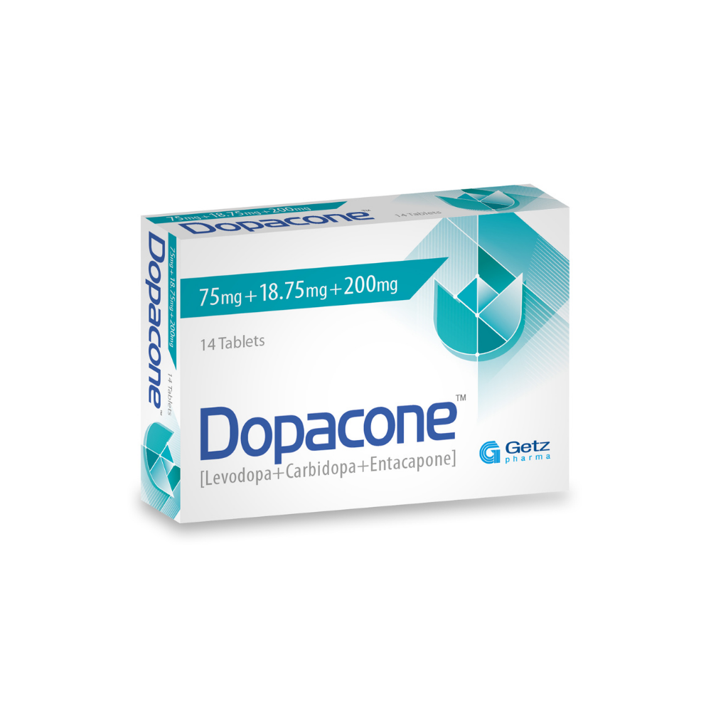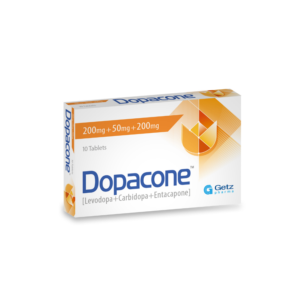 Dopacone (Levodopa + Carbidopa + Entacapone) is indicated for the treatment of Parkinson’s disease. Dopacone (Levodopa + Carbidopa + Entacapone) can be used: